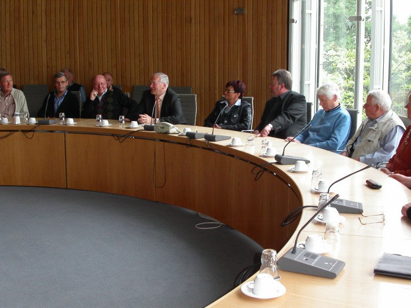 In einem Ausschusssitzungssaal empfängt uns unser Gastgeber, der Paderborner Landtagsabgeordnete Wolfgang Schmitz