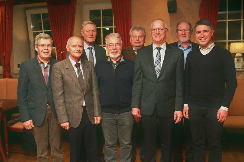 Der Vorstand des Männerchores Elsen im Jahre 2018 mit Chorleiter Raphael Schütte. Neu im Vorstand sind Günter Meyerhenke (1. Kassierer) und Georg Knies (Schriftführer).