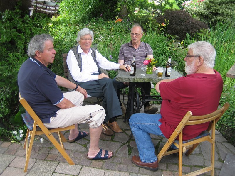 Unser Gastgeber Heiner mit unserem Chorleiter und den beiden noch nicht aktiven "Grillmeistern" Heinfried und Ernst.